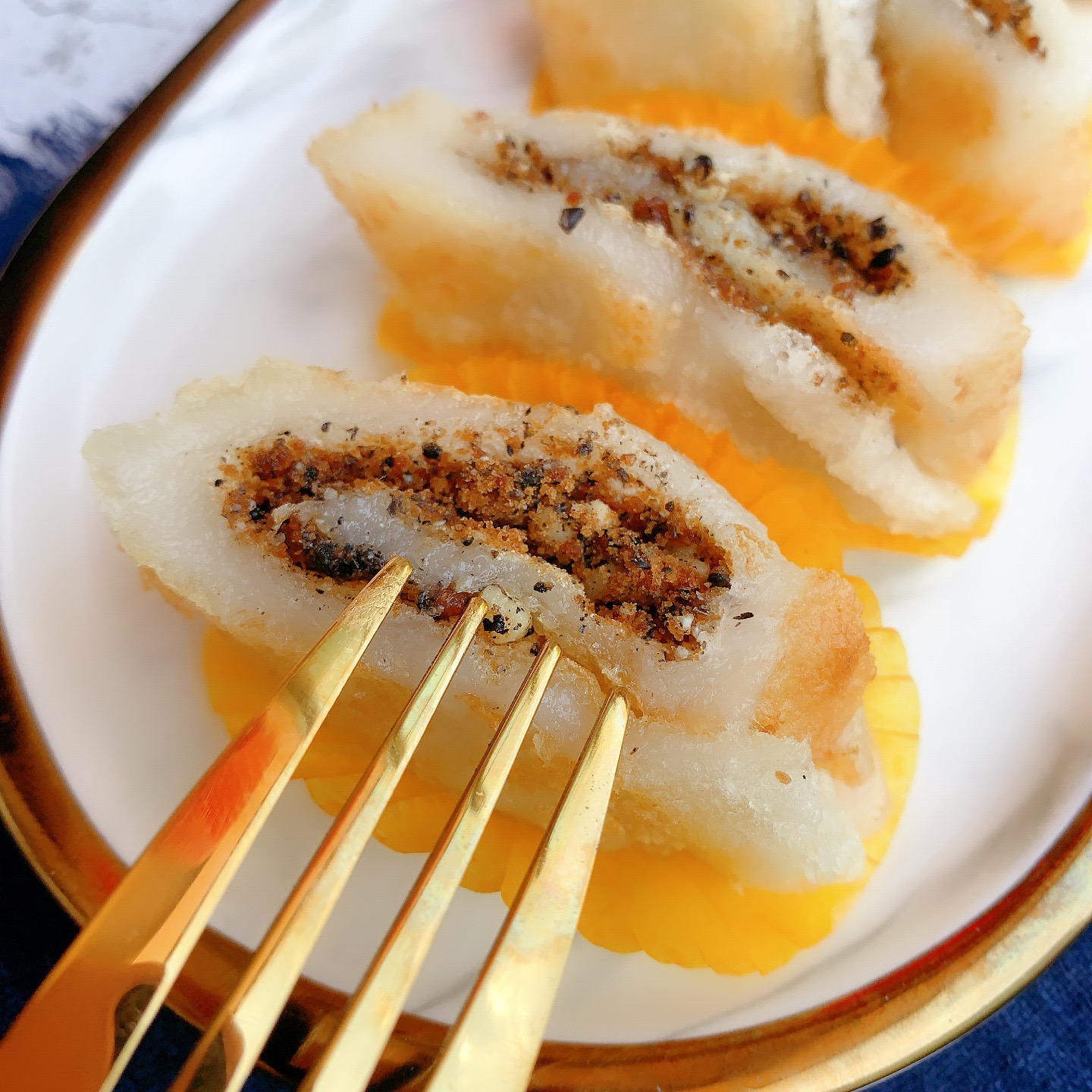 Glutinous rice, brown sugar, black sesame, soybean flour, peanuts, walnuts