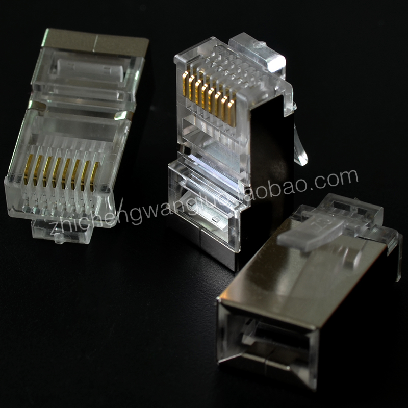 Yihua Super Five Category Shielded Crystal Head 8P8C Copper Nickel Plated Shell Mesh Wire Connector Metal Shell Crystal Head 100pcs