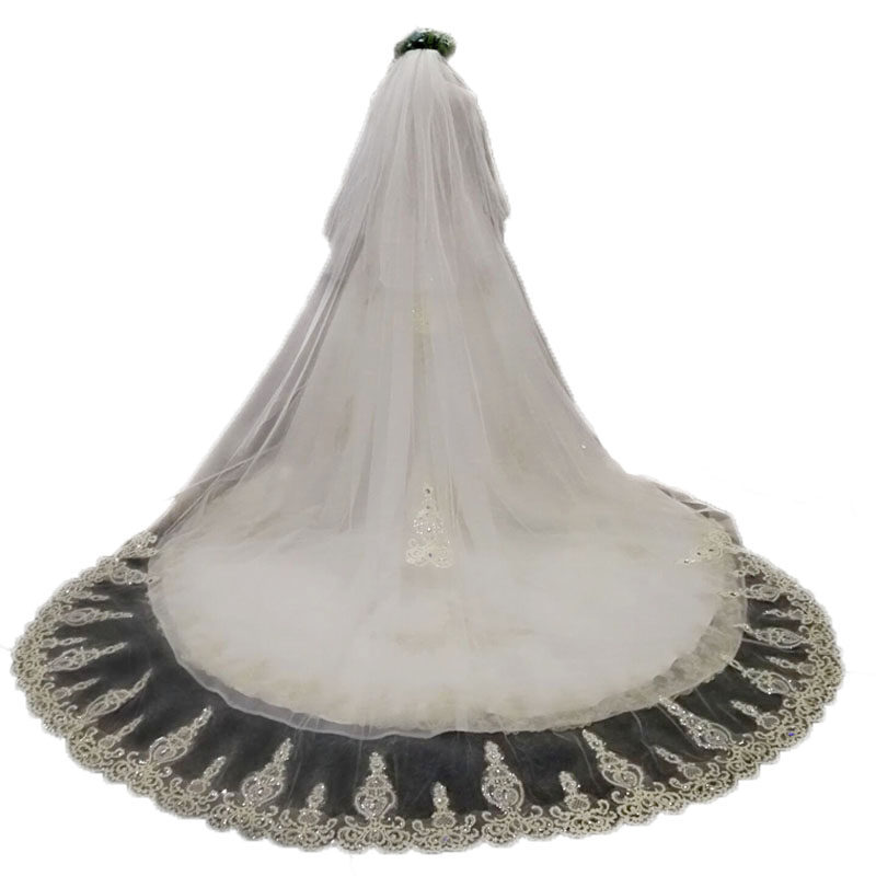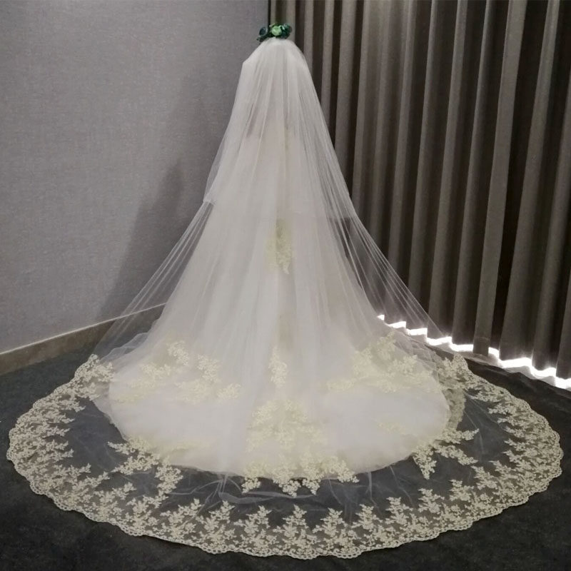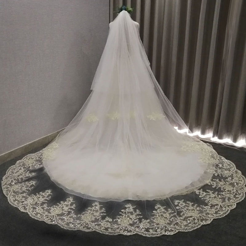 Star veil bride main wedding dress white long version champagne color trailing veil headdress super fairy forest wedding retro