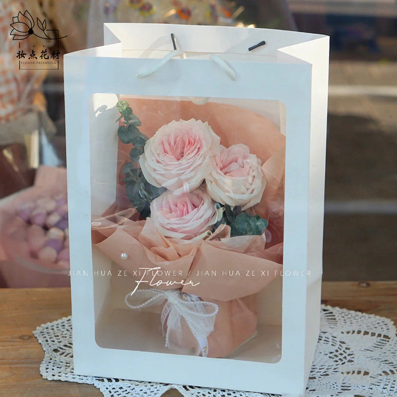 Transparent window bag gift flower handbag kraft paper window flower box flower bag 520 Teacher's Day floral supplies