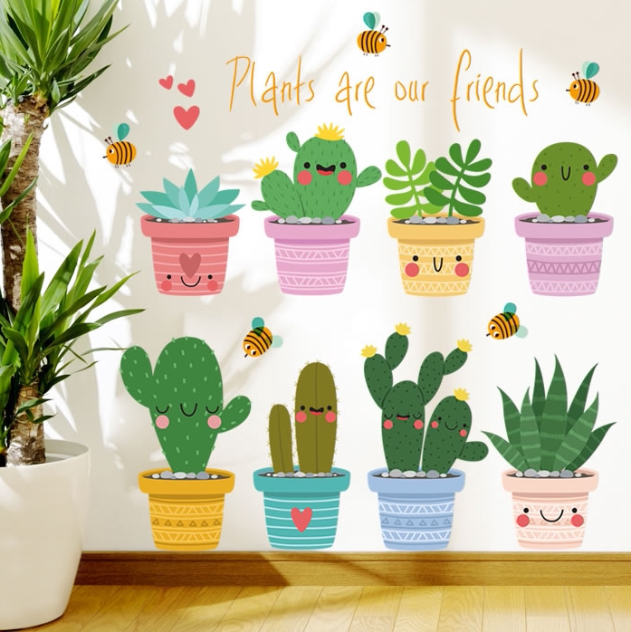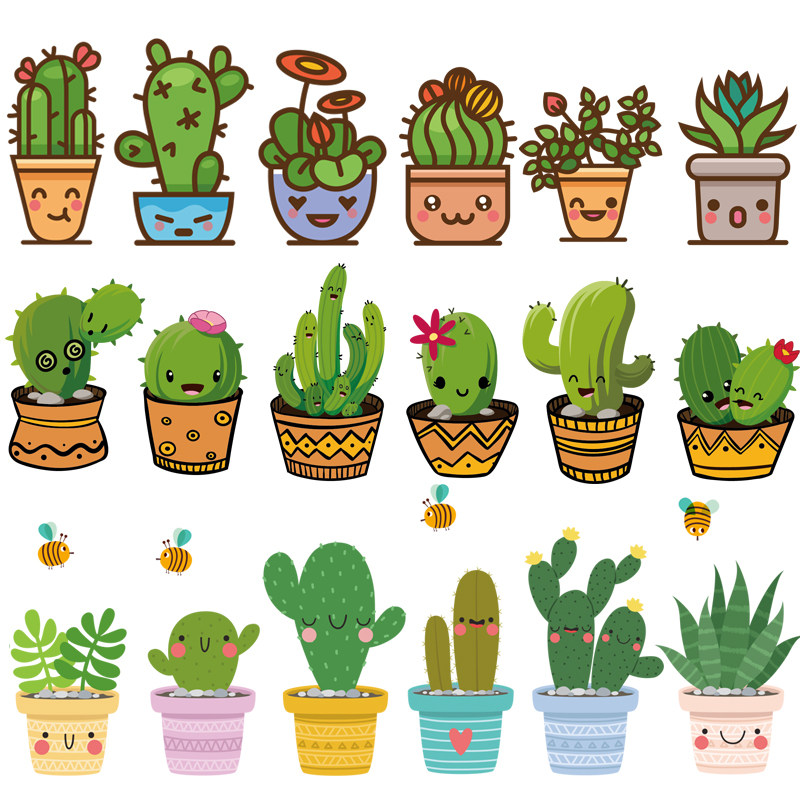 Green potted wall stickers cute fresh plant flower potted decoration living room corridor porch bedroom skirting board stickers