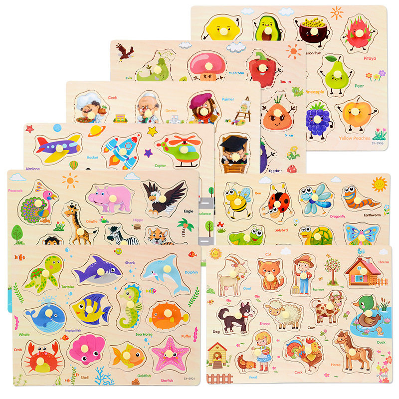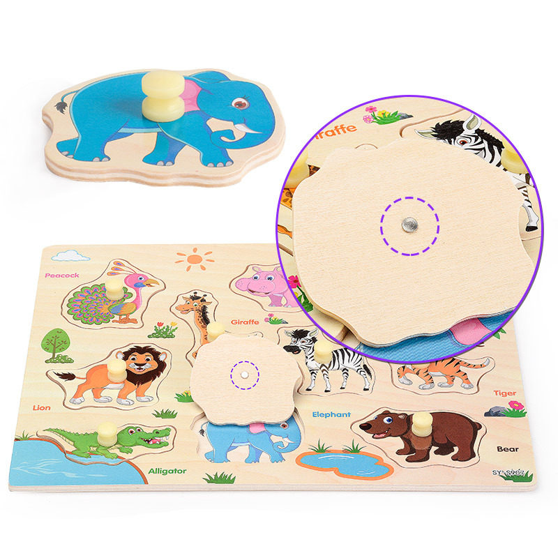 Wooden Hand Grip Board Jigsaw Puzzle Baby Puzzle Early Education Wooden Jigsaw Children Cognitive Toys 2-3-4-5-6 years old