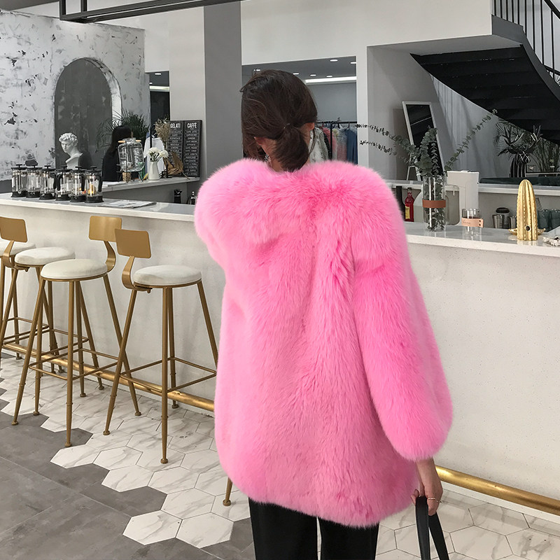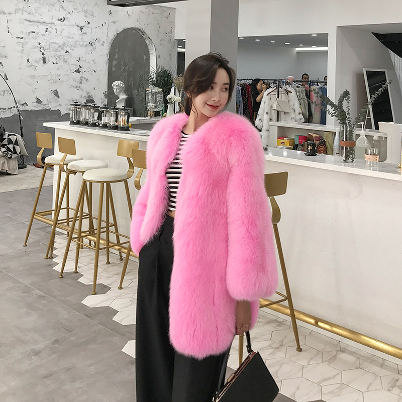 Imported fox fur straw jacket female medium long version Korean version long sleeve 2021 Haining winter new temperament warm
