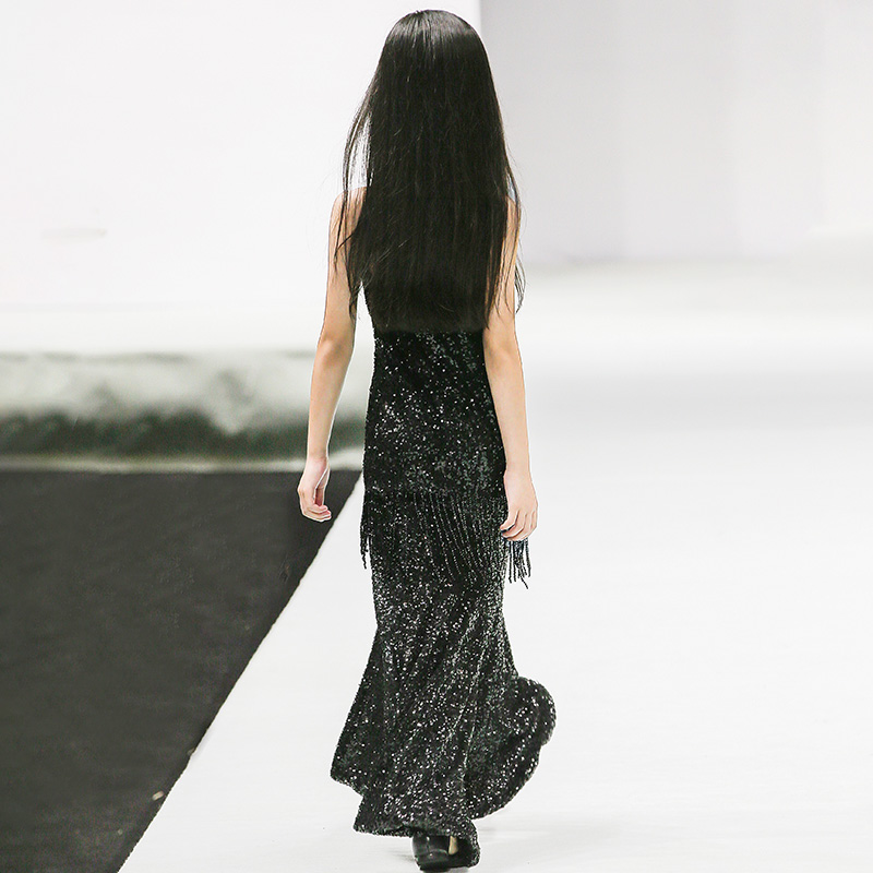 Children's Gown Girl Black Act Out 2022 New CUHK Fashion Open Fork Fish Tail Gown Girl Walking Show