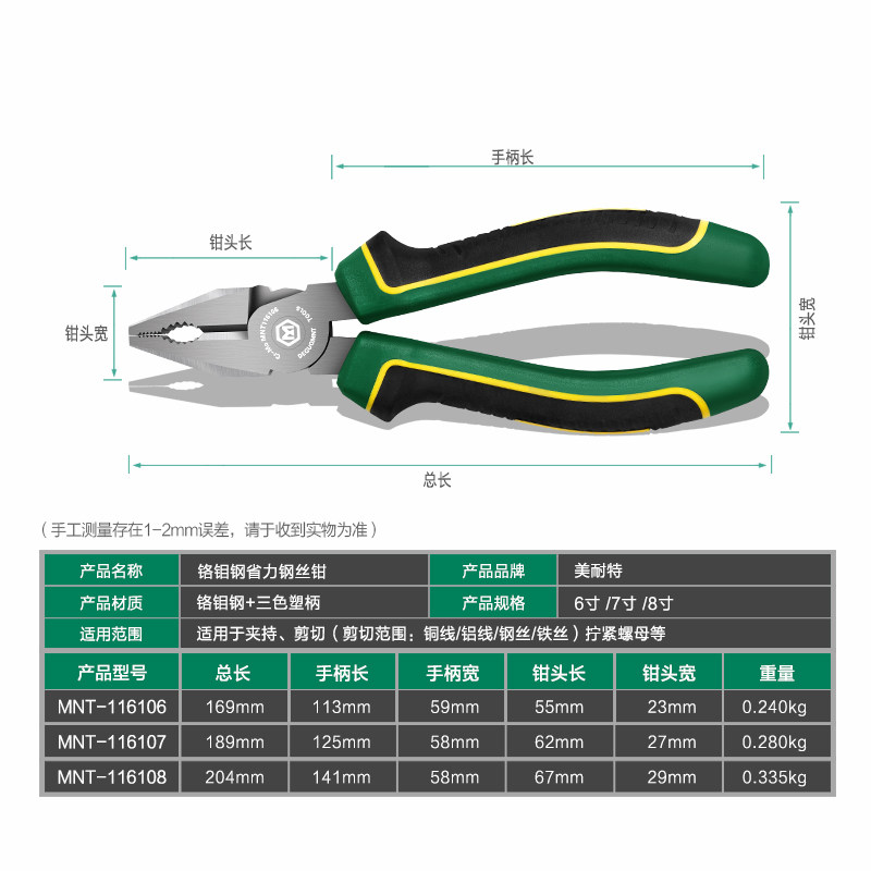 6-inch eccentric labor-saving wire pliers MNT-116106 7 inch eccentric labor-saving wire pliers MNT-116107 8 inch eccentric labor-saving wire pliers MNT-116108