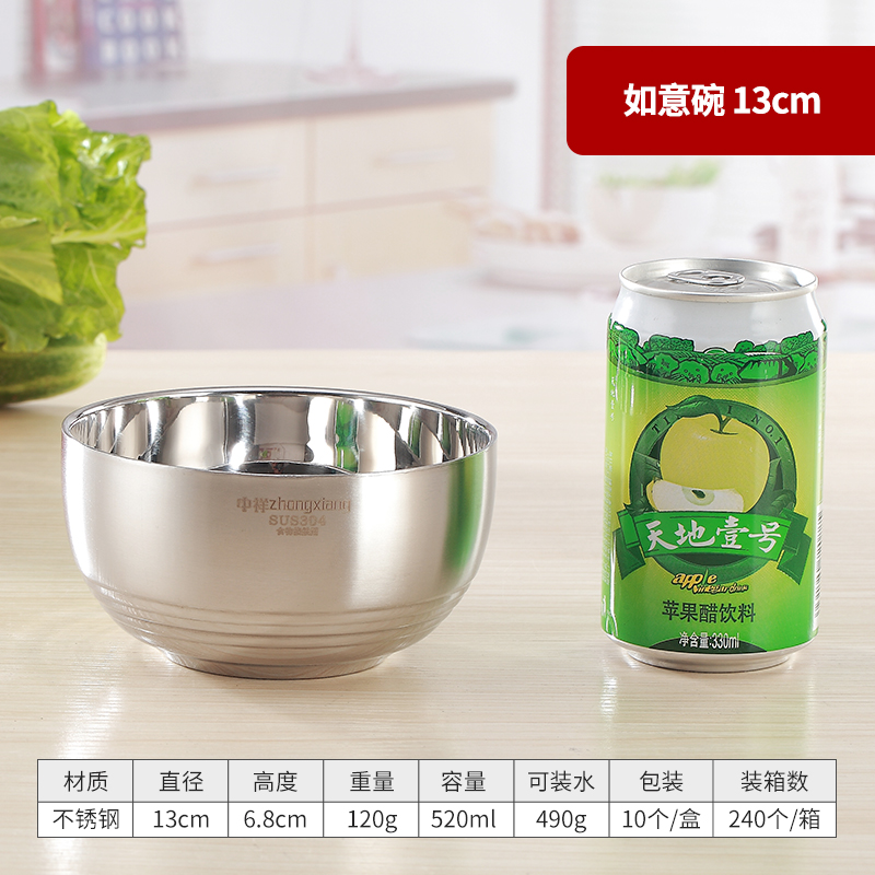 Double Layer Anti-Scalding Bowl Home Eating Bowl 304 Stainless Steel Bowl Cafeteria With Rice Bowl Breakfast Porridge Bowl Small Bowl Iron Bowl
