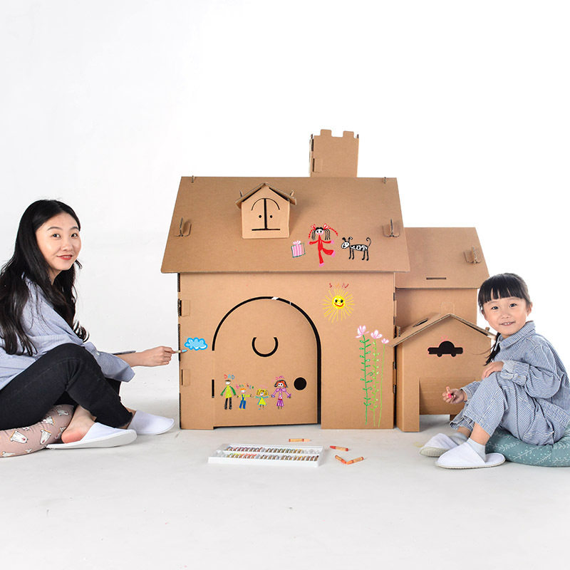Oversized children's cardboard house play house diy spell plug toy house hand-painted paper house kindergarten performance props