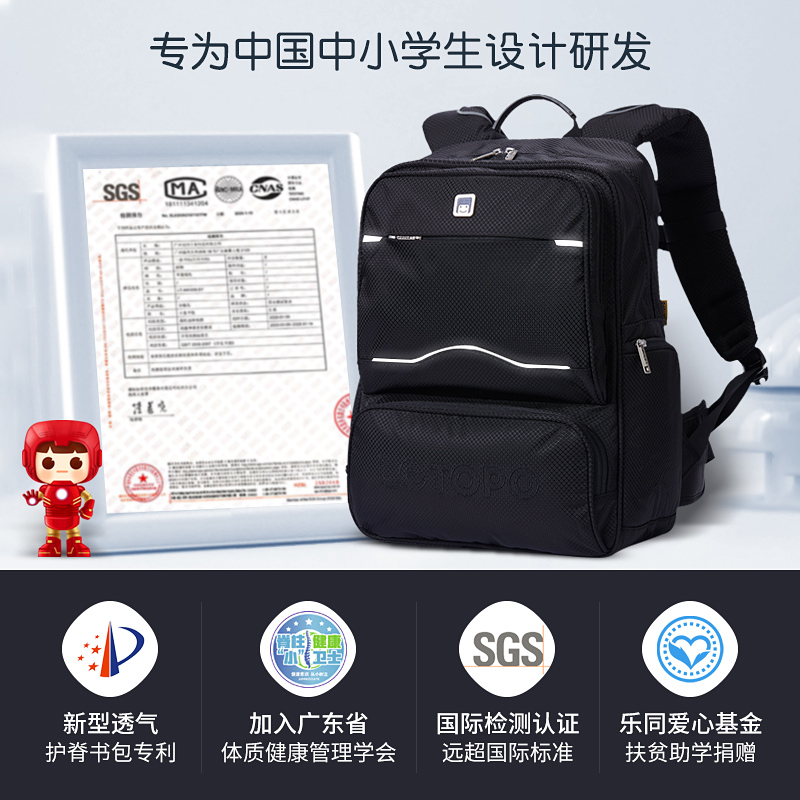 Le Tong Iron Man series spine bag male primary school students 26L burden reduction 3-6 grade durable shoulder bag tide card