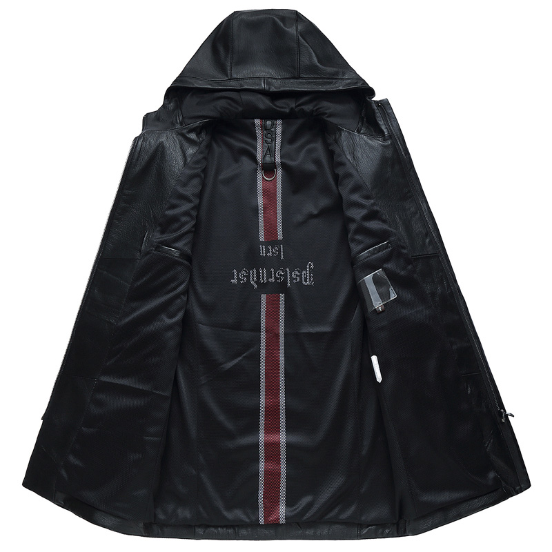 Autumn and winter Henning large size goat leather jacket men's gattening up mid-length version genuine leather leather sweater with cap jacket