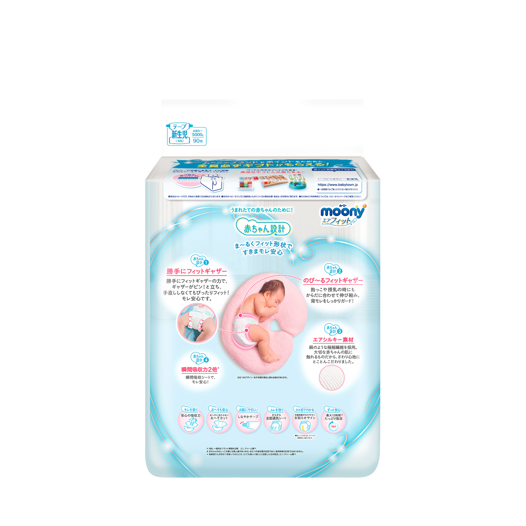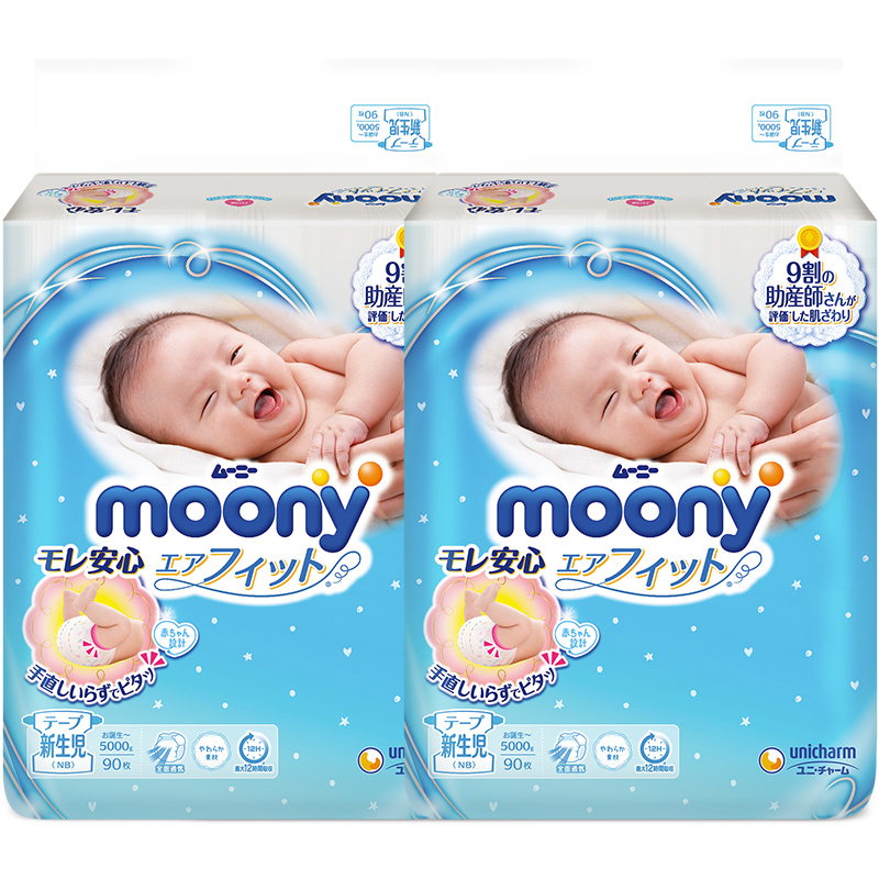 Unijia moony transparent newborn diapers Baby breathable ultra-thin dry diapers diapers NB90*2