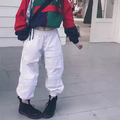 Aunt Leng customized 18 spring and summer models for men and women and children's Hong Kong style overalls, pockets, casual hip-hop trend pants, parent-child models
