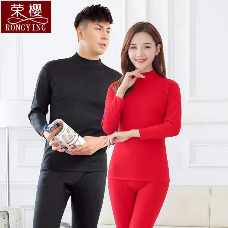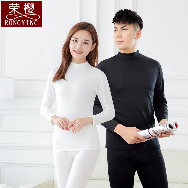 Pure Color Autumn Clothes Sanitary Pants Fever Clothes Half High Collar Male And Female Couples Pure Cotton Full Cotton Set Spring Autumn Season Thin