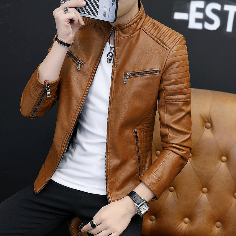 Men's leather jacket new 2021 Spring and autumn plus suede thickened Korean version trendy autumn fitted locomotive clothes men's leather jacket