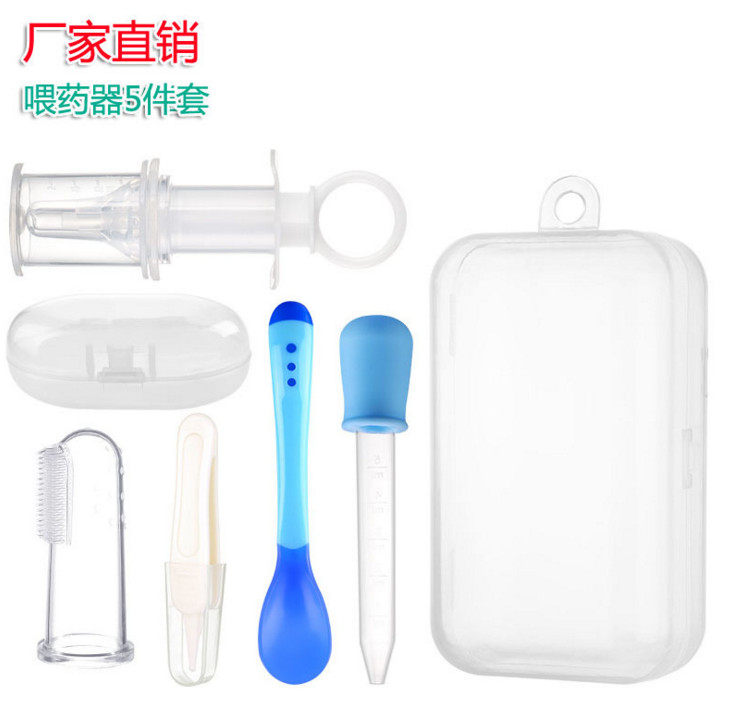 Baby antichoking silicone shunt feeder combination set of needle drop tube feeding spoon clamp toothbrush 5 pieces