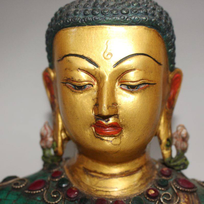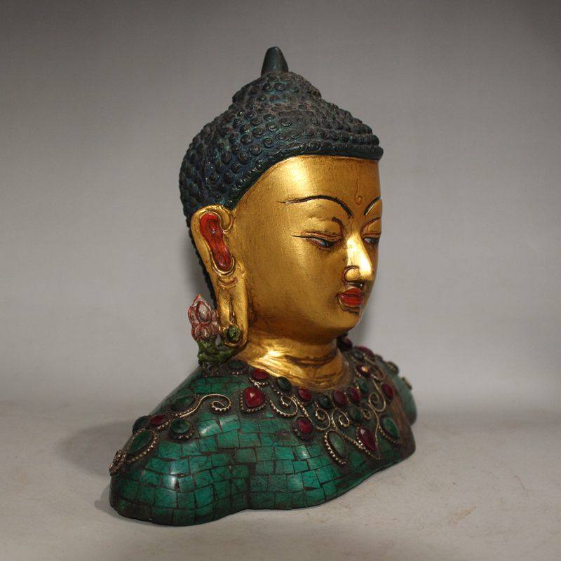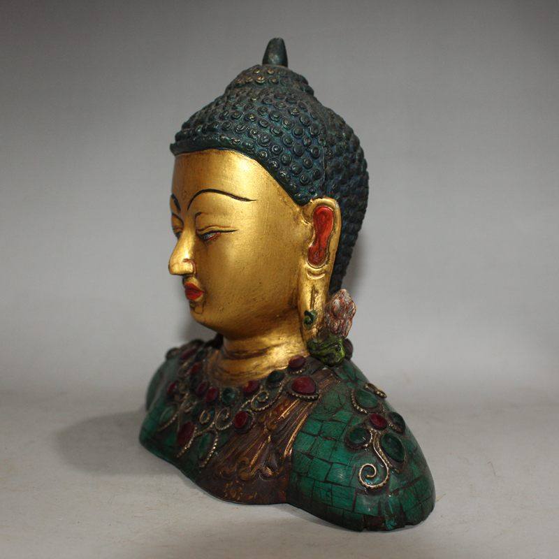 Nepal's old brass inlaid with turquoise thrill Buddha, Sakjamoni Buddha, serves the antique collection