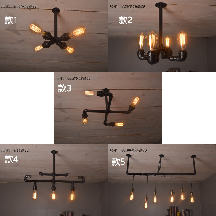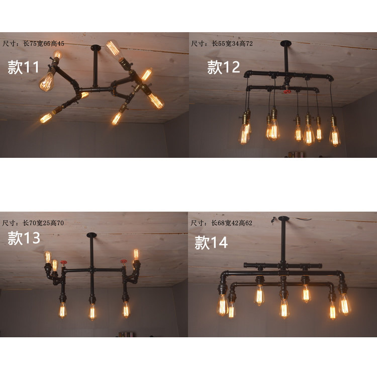 Edison chandelier wrought iron American chandelier loft chandelier ceiling lamp industrial style water pipe chandelier