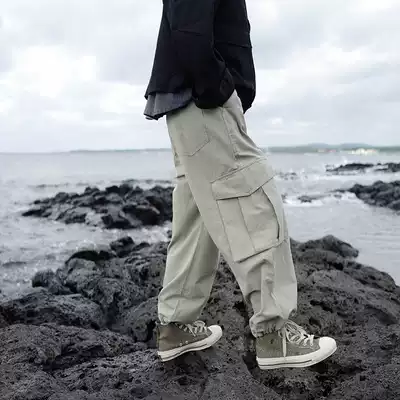 Coke life homemade Japanese loose big pocket BF bunches French overalls American retro straight pants men and women