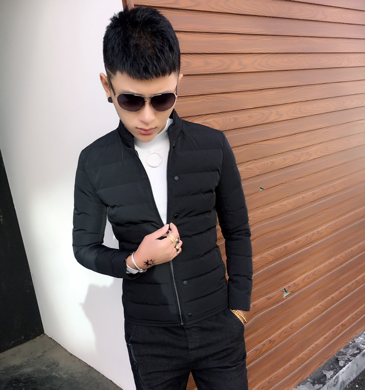 2022 winter new cotton jacket trendy men's thin cotton jacket youth self-cultivation fashion personality short stand collar cotton jacket