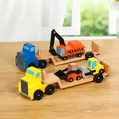 Children's wood can be disassembled and assembled. Various simulation carrier car building block car assembly model transport vehicle engineering truck truck