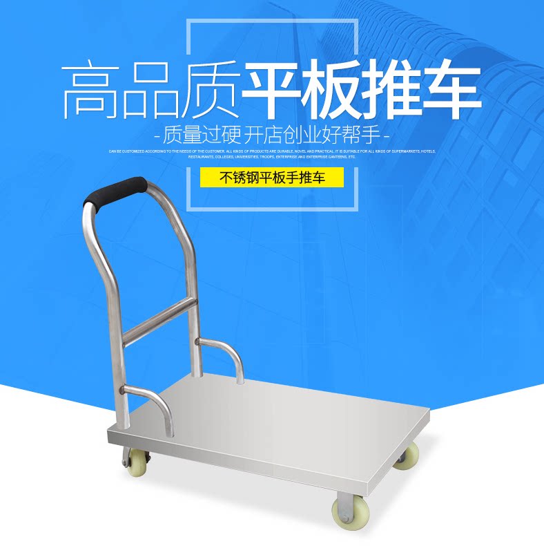 Flatbed trolley thickened 201 stainless steel carrier foldable cart push truck Supermarket warehouse pull truck