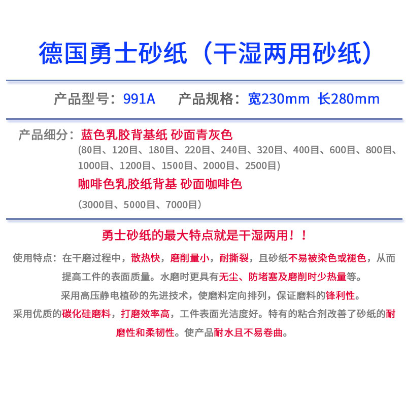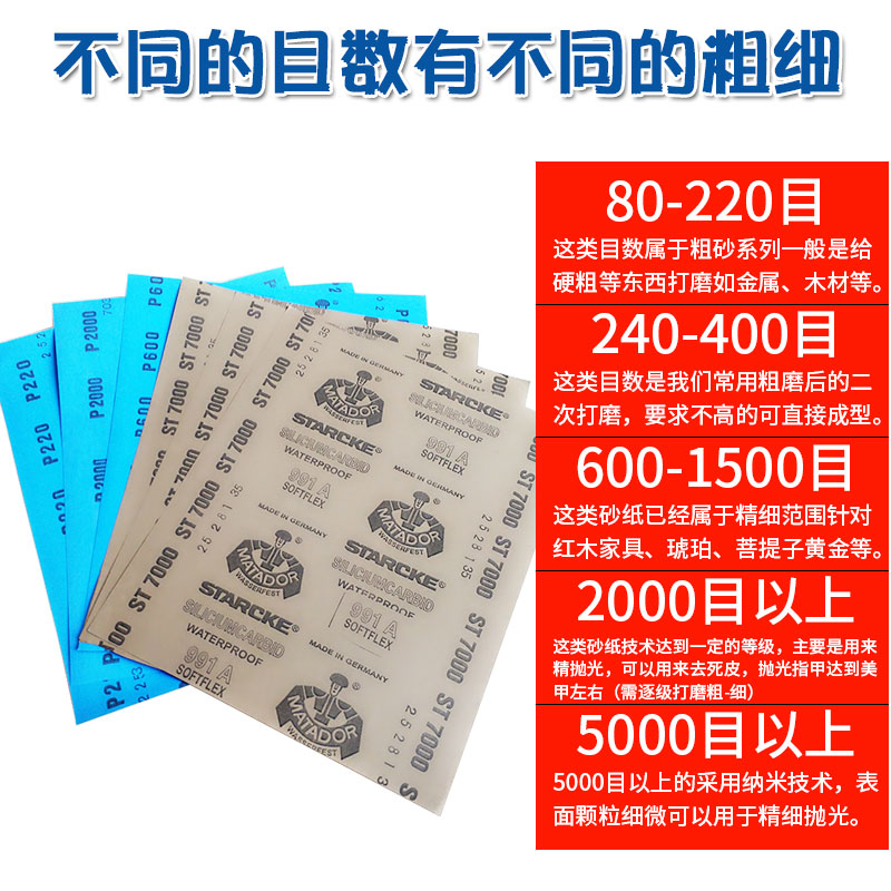 A large German Warrior sandpaper 80 mesh a large sheet of German Warrior sandpaper 120 mesh 1 large sheet of German Warrior sandpaper 180 mesh 1 large sheet of German Warrior sandpaper 220 mesh 1 large sheet of German bravery