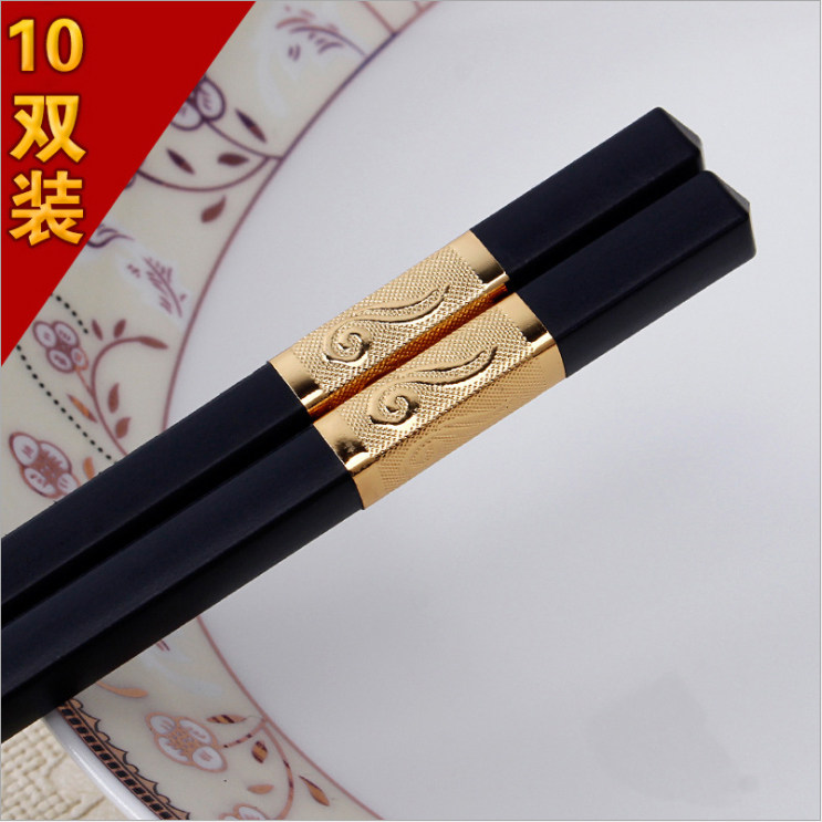 Household chopsticks resistant to high temperature and not moldy high-end household chopsticks non-slip anti-scalding 10 pairs set of alloy solid wood chopsticks