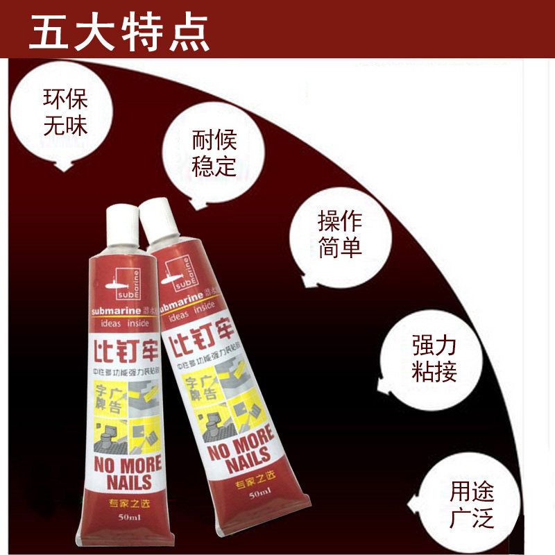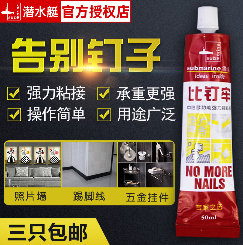 Submarine liquid-free nail Quick-drying glass glue Strong liquid nail Tile adhesive Mirror skirting board strip sealant