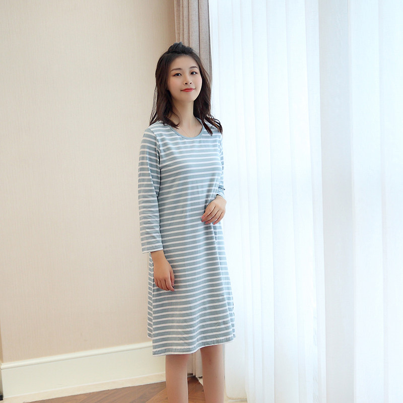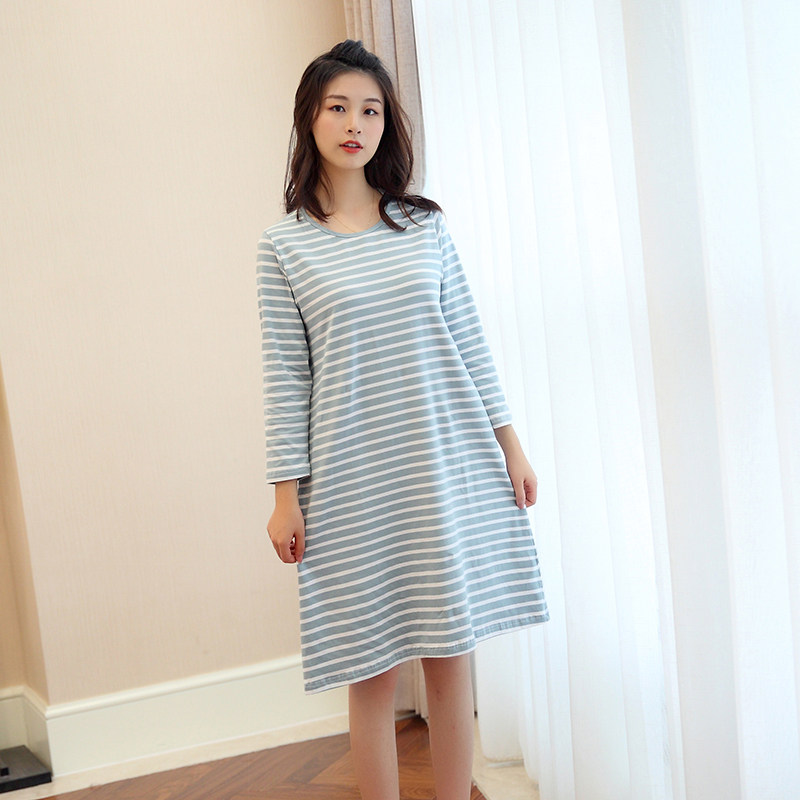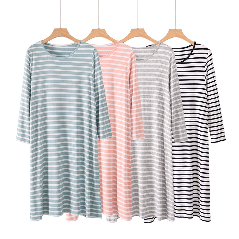 Modal pure cotton women's long-sleeved nightdress loose and enlarged casual mid-length skirt with nine-quarter sleeves can be worn outside pajamas home clothes