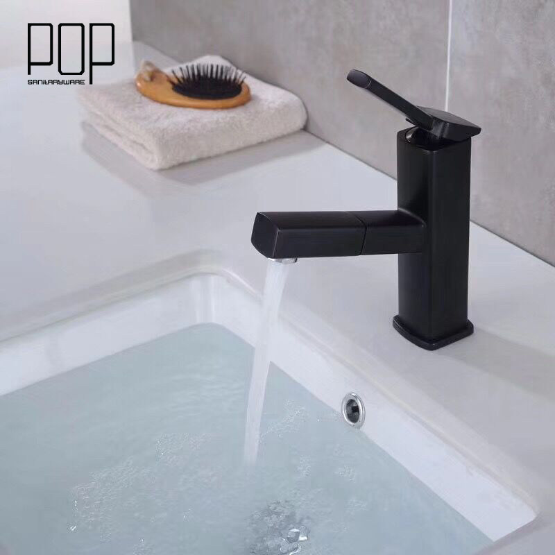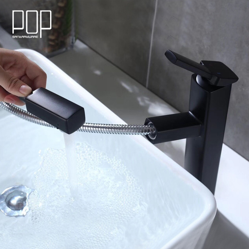 POP bathroom copper paint pull-out cold and hot water faucet Single hole table basin Wash basin basin faucet