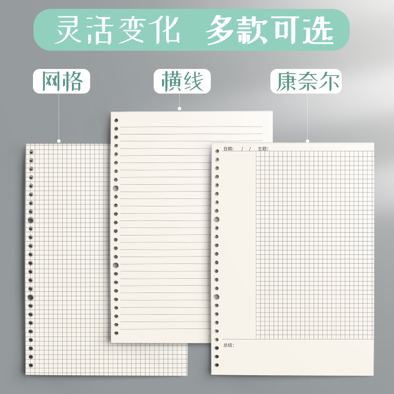 B5 Loose-leaf paper replacement core A4 grid horizontal line grid This 26-hole notebook sub-grid Cornell A5 clip ring removable ultra-thick replacement core Removable thickened shell core Simple ins wind