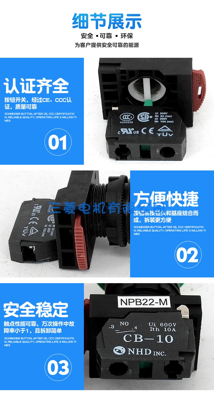 NHD Congratulatory-head mushroom head button switch NPB22-M contact point self-reset 22mm waterproof 1A open