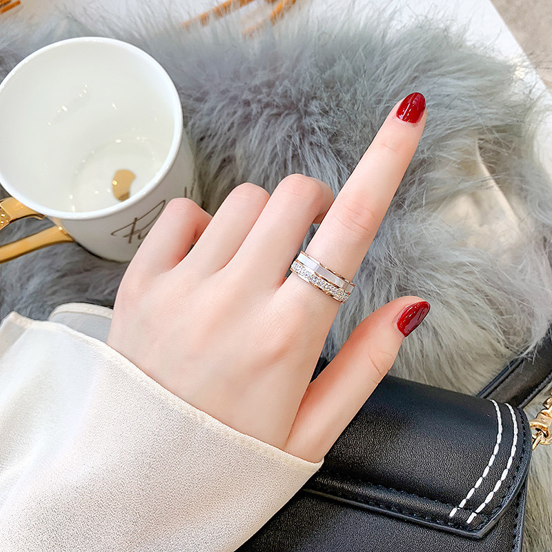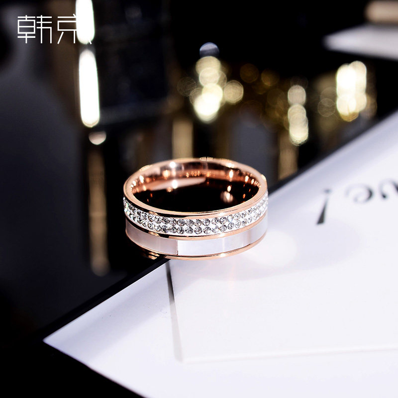 Han Jing atmospheric diamond fashion personality ring female European and American titanium steel plated rose gold non-fading simple fashion ring