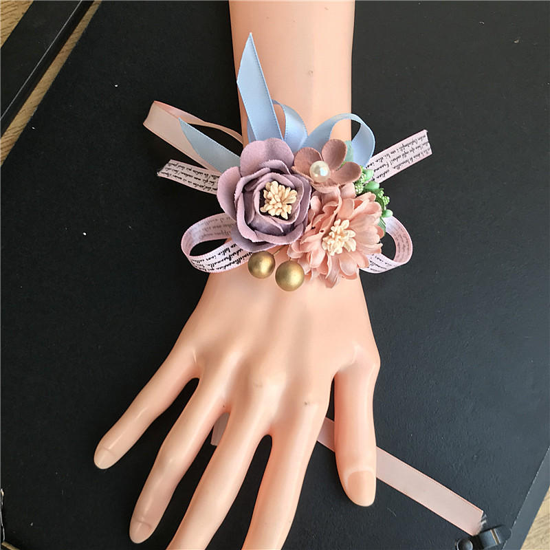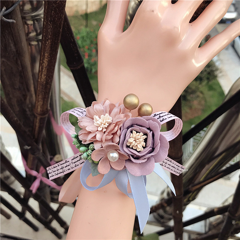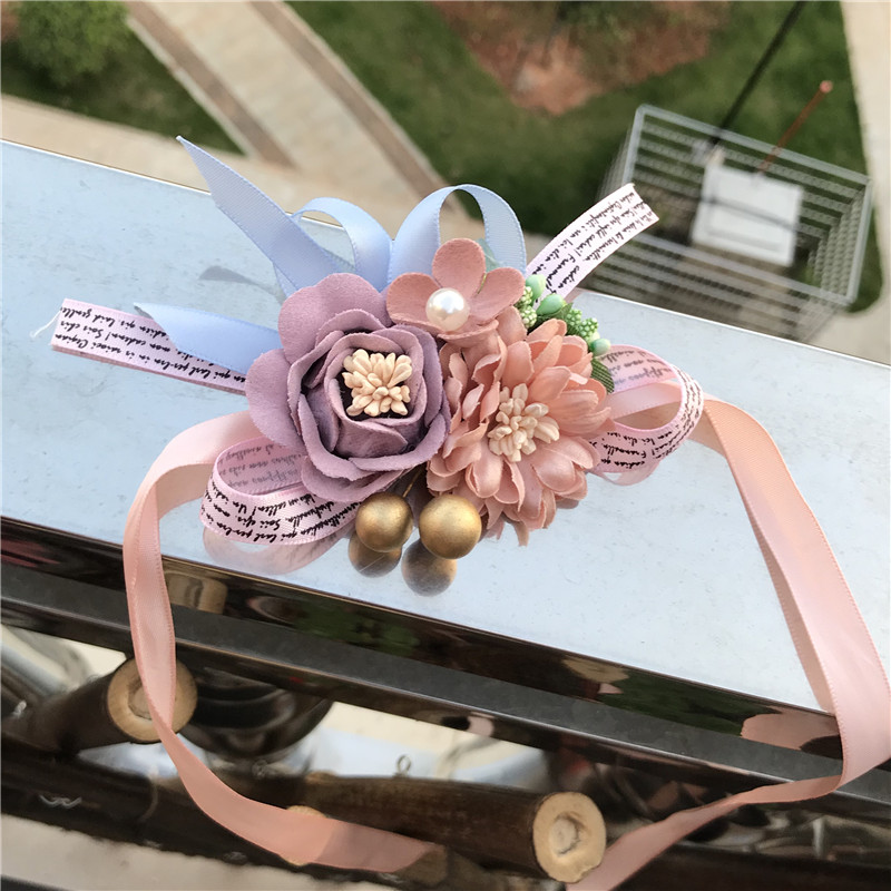 Hand flower wedding bridesmaid bridesmaid sister group Chinese rose red pink white bracelet wrist flower