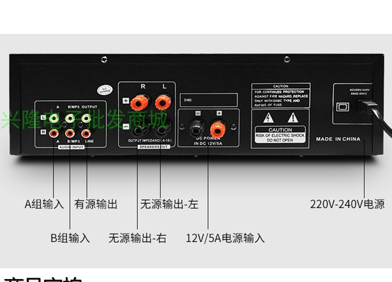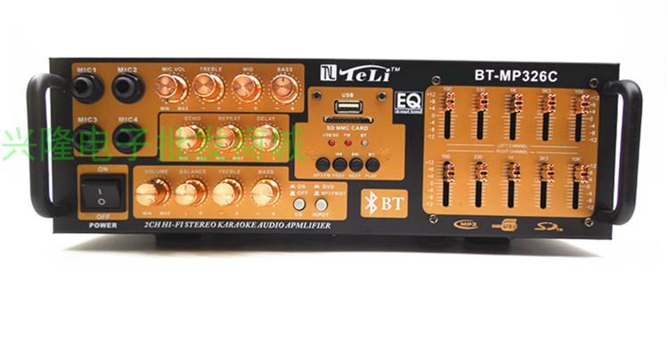 BT-326A home sound amplifier 12v karaoke high power EQ balanced USB Bluetooth power amplifier radio