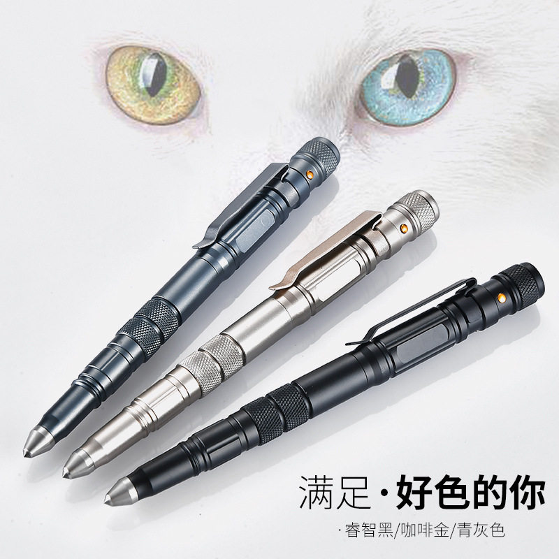Multifunctional tungsten steel head tactical pen girl self-defense wolf artifact broken window LED with flash outer defense weapon
