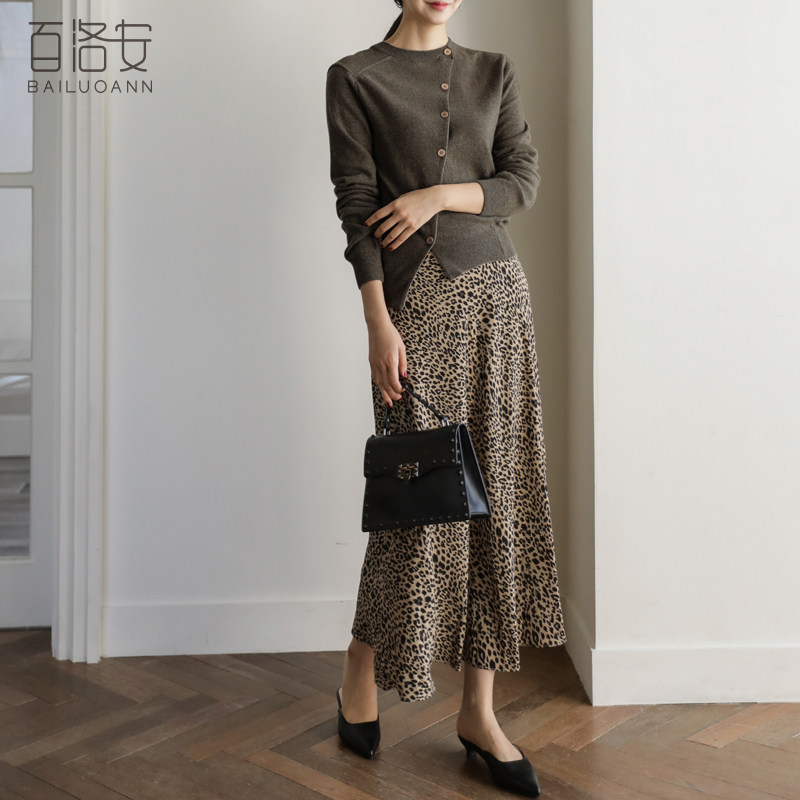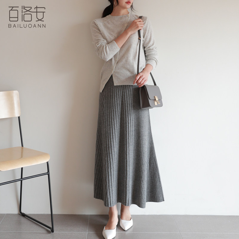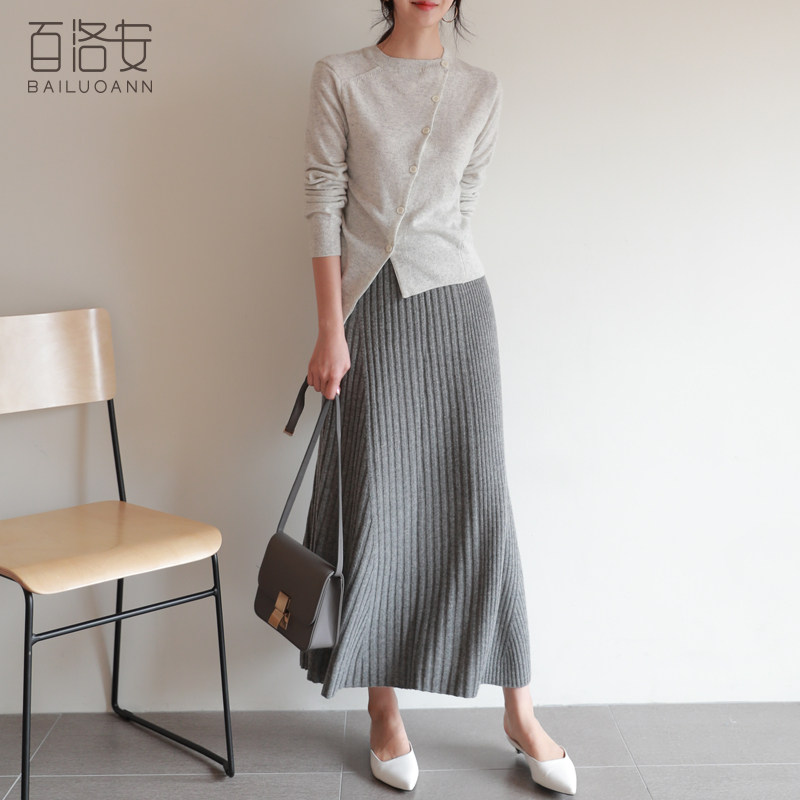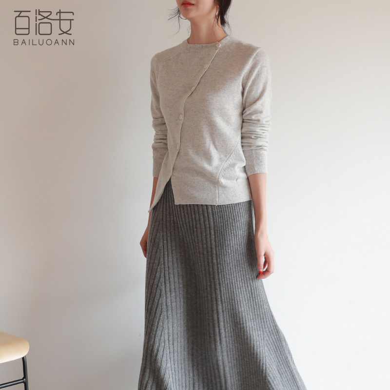 Bailuoan fashion oblique button knitted cardigan slim bottoming shirt autumn new one dress two wear women's sweater pullover