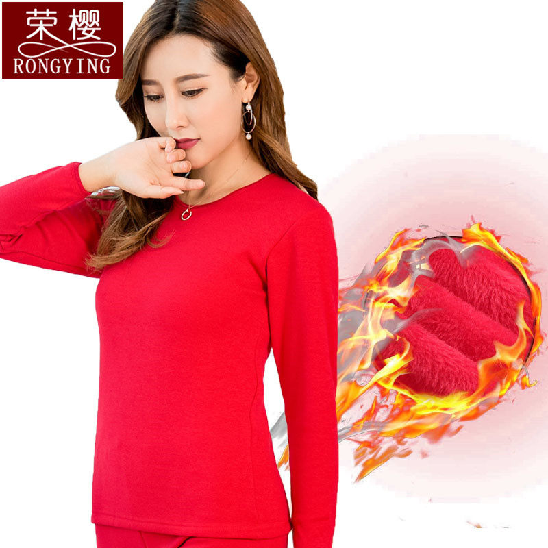 Ladies quick hot round neck heating jacket plus velvet thickening plus size natal year wedding dress pure cotton bright red top