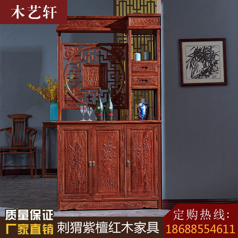 Red Wood Septal Hall Cabinet Tingle Hedgehog Purple Sandalwood Chinese Style Bifacial Screen Partition Flowers Pear Wood Fu Character Xuan Guan Cabinet