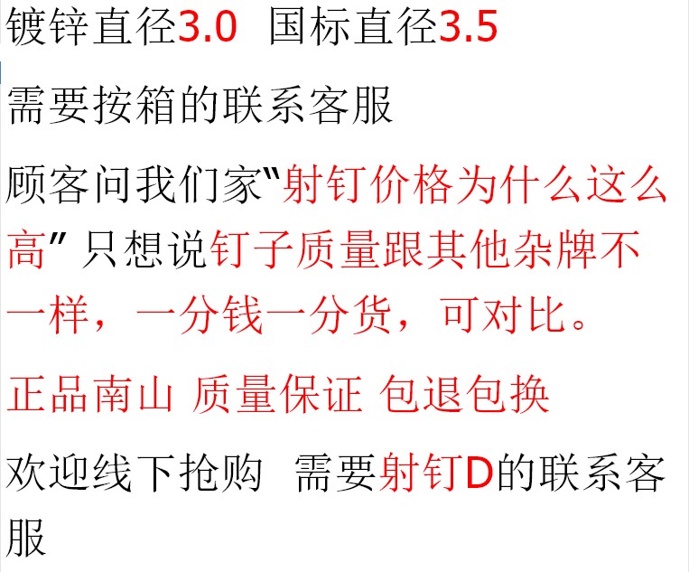 National standard Nanshan 22mm a box (100 pcs)Galvanized(yellow)Nanshan 22mm a box(90 pcs)National standard Nanshan 27mm a box (100 pcs)Galvanized yellow Nanshan 27m