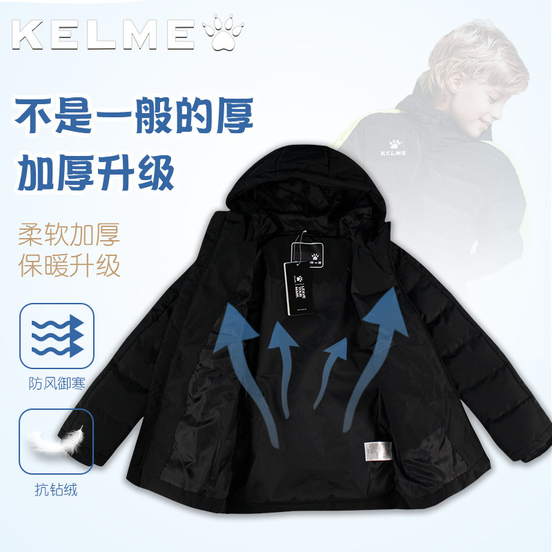 Kelme training coat children's football sports cotton-padded jacket mid-length imitation down jacket kelme winter training cotton clothes
