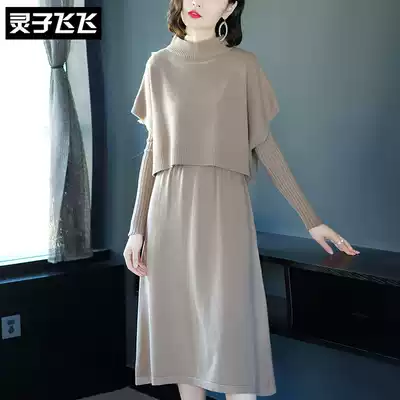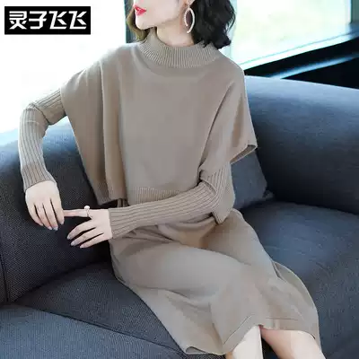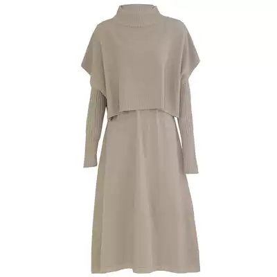 2018 autumn new female khaki commuter slim long sleeve pullover bat knitted sweater dress