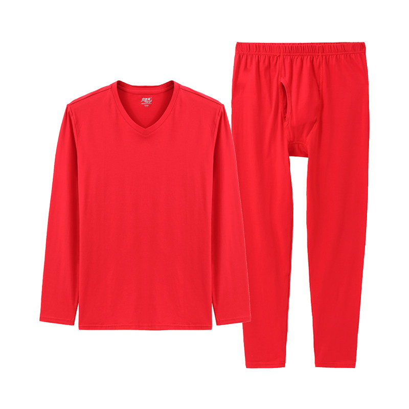Yiershuang cotton underwear men's youth V-neck ultra-thin spring and autumn cotton sweater Benming year autumn clothes sanitary pants suit