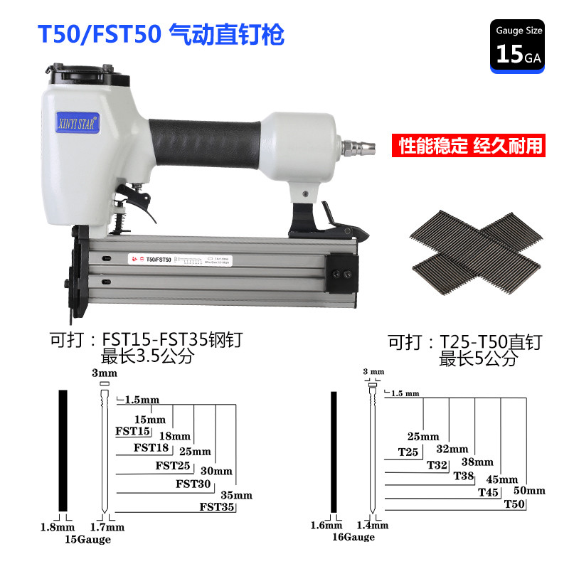 NEW YEY T50 FST 50 gas nail gun with a head - free black steel pin - pin woodworking line