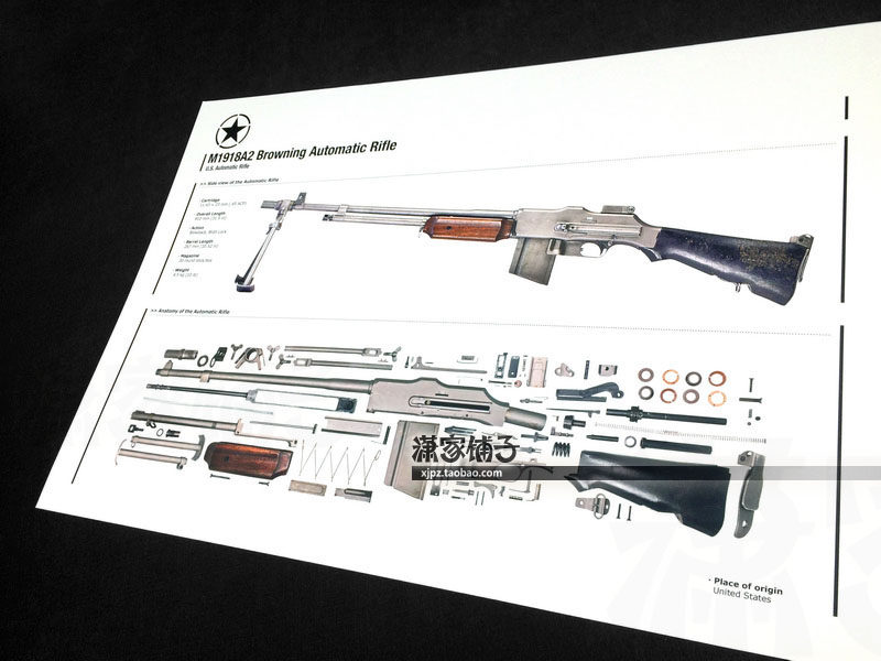 American Browning Automatic Rifle M1918A2 Light Machine Gun Firearms Structure Chart Wall Chart Poster Decorative Painting