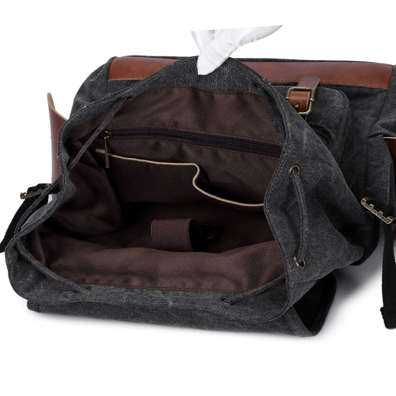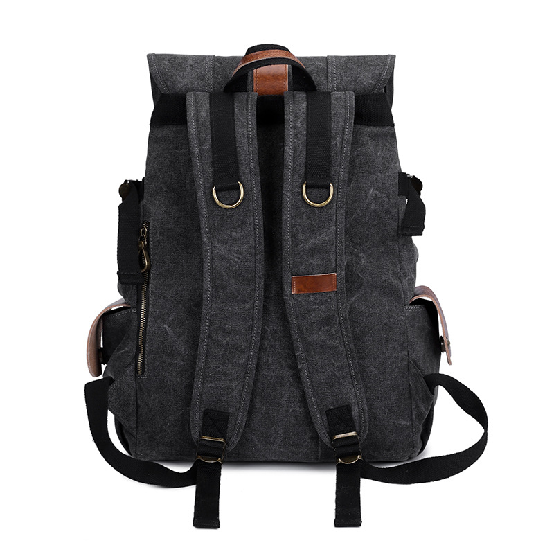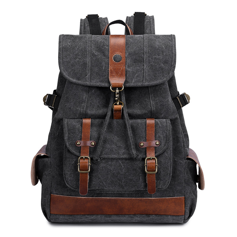 New shoulder bag retro casual Korean version of the tide men and women universal canvas with leather travel backpack student computer school bag