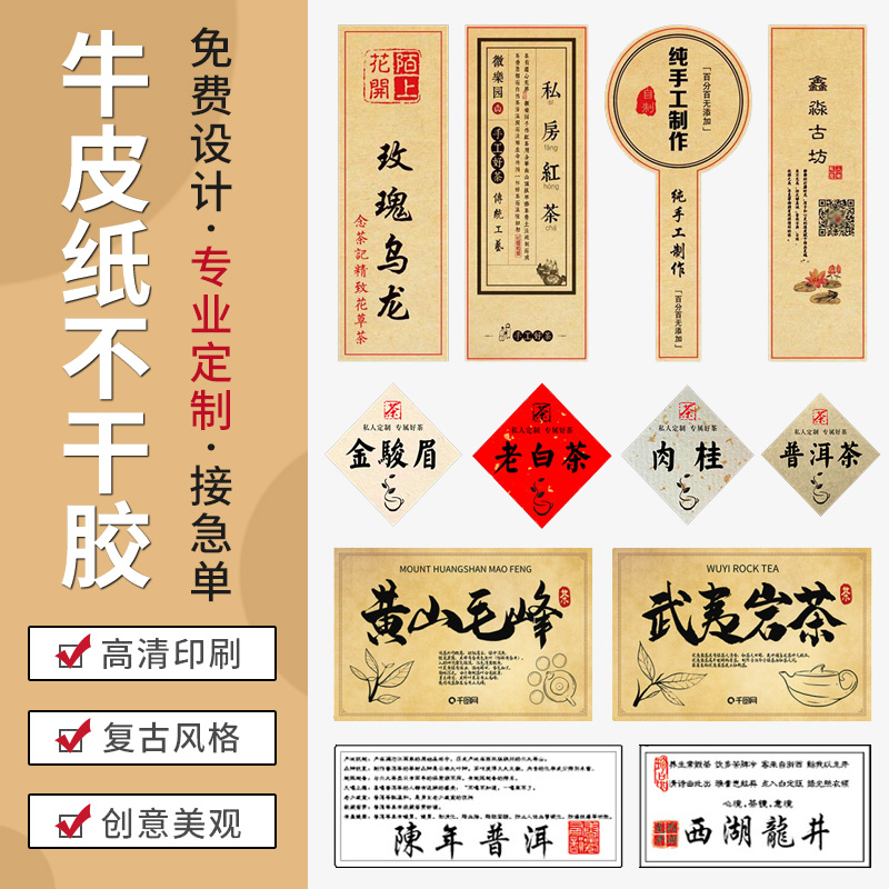 Kraft paper self-adhesive two-dimensional code logo sticker vintage tea bottle label printing custom