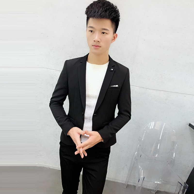 2018 new men's casual suit jacket men's body Han version handsome and black male blouse single piece minor west suit tide