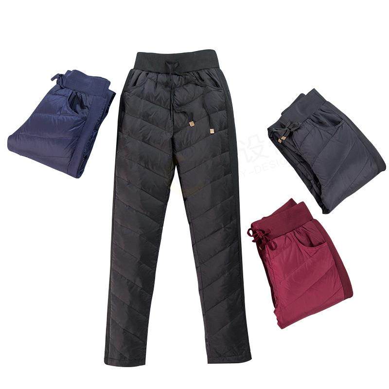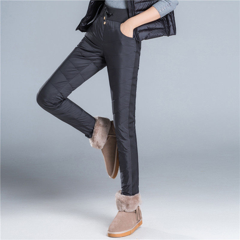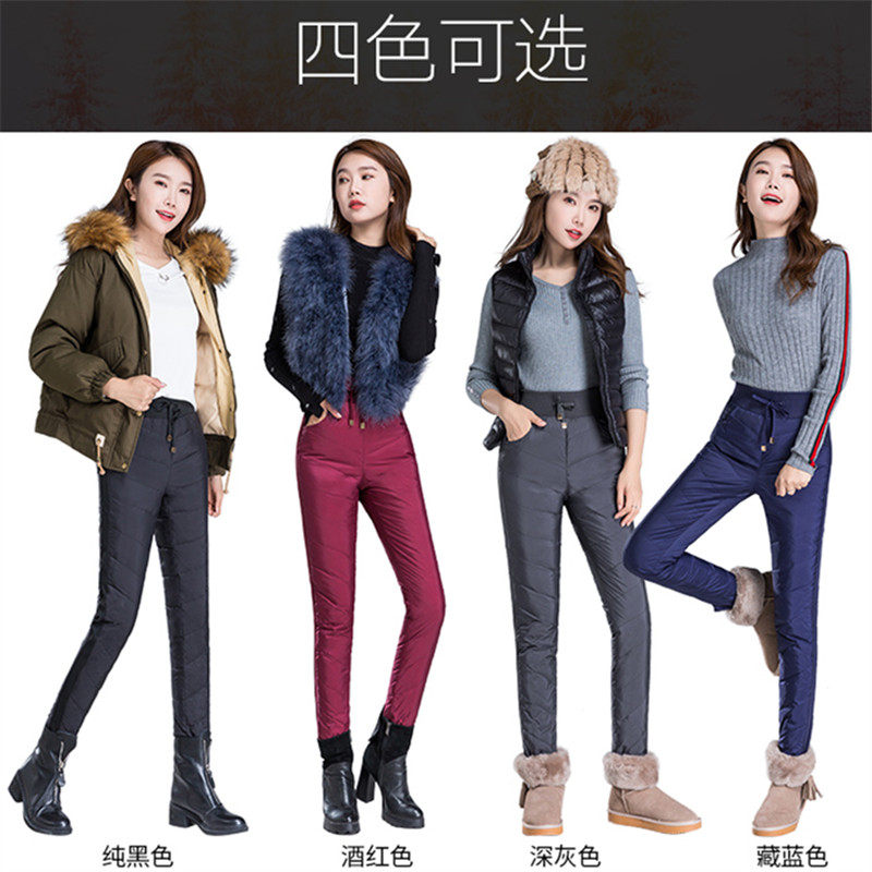 Winter down pants woman outside wearing high waist thickened double-sided white duck suede elastic display slim and small foot down cotton pants female large size