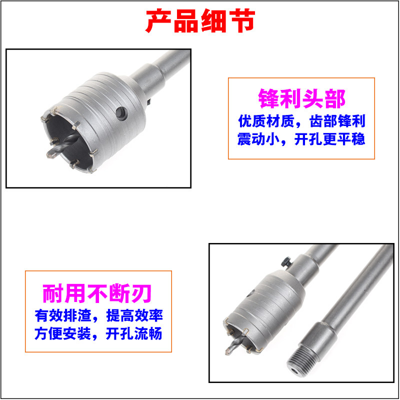 Lengthened 700 electric hammer drill wall drilling machine percussion drilling air conditioning brickhead drilling bit domestic water pipe drill bit suit