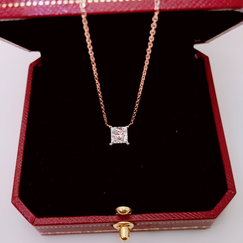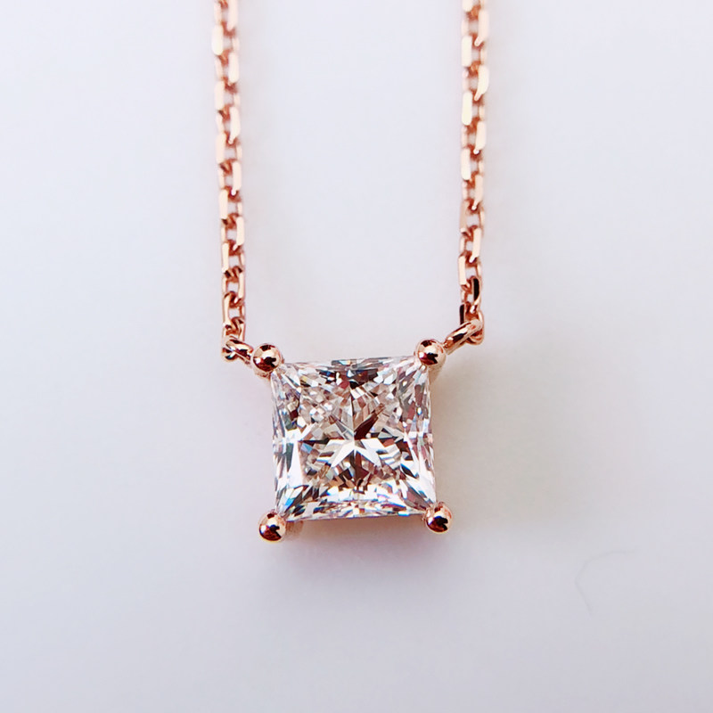 18K rose gold diamond pendant 1 carat princess diamond necklace custom 50 points single diamond collarbone necklace